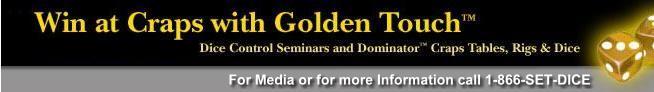 Golden Touch CrapsDice Control & Craps Betting StrategiesSee The Dice Dominator in Action!Dice control in craps consists of 8 physical elements. This first of three videos details elements 1, 2, and 3. Watch all 3 in YouTube » Subscribe to our NewsletterClick the button below to get all the latest updates and events from GTC, including information on current craps and dice control seminars. Once you subscribe below, you will receive a confirmation e-mail, along with download instructions for the free "Expert Tips on Casino Gambling" e-book noted below. The History Channel Presents: